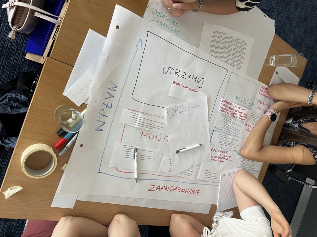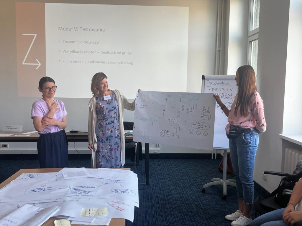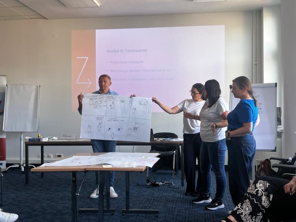 Jednym z nich było szkolenie „Jak skutecznie konsultować i projektować usługi publiczne?”, podczas którego uczestnicy – pod okiem Agnieszki Dawydzik i Jakub Pyrzanowskiego – zdobywali praktyczne umiejętności w zakresie planowania i prowadzenia konsultacji społecznych, budowania kultury dialogu i współpracy z interesariuszami, a także wykorzystania metod Design Thinking i Service Design w projektowaniu nowoczesnych usług publicznych.