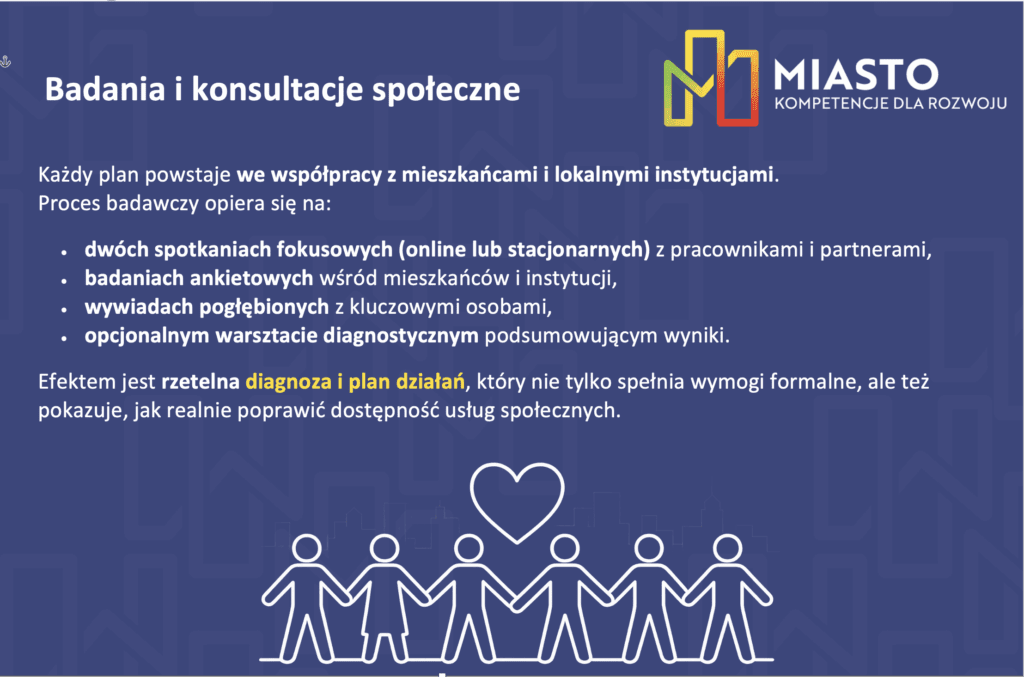 - Plan rozwoju usług społecznych– cele, wskaźniki, harmonogram i potencjalne źródła finansowania.