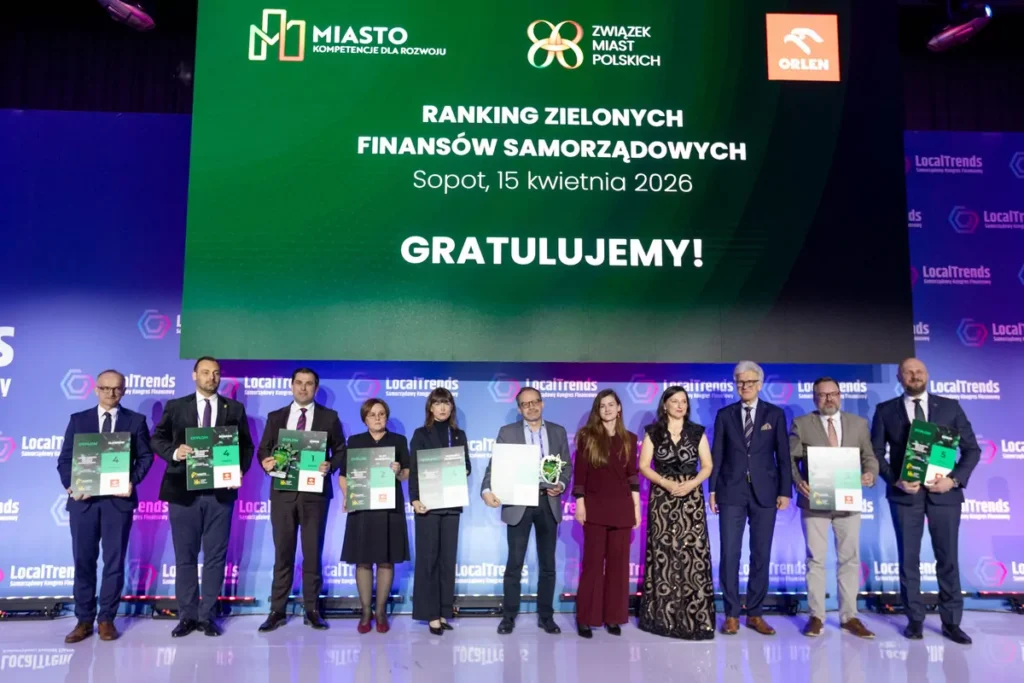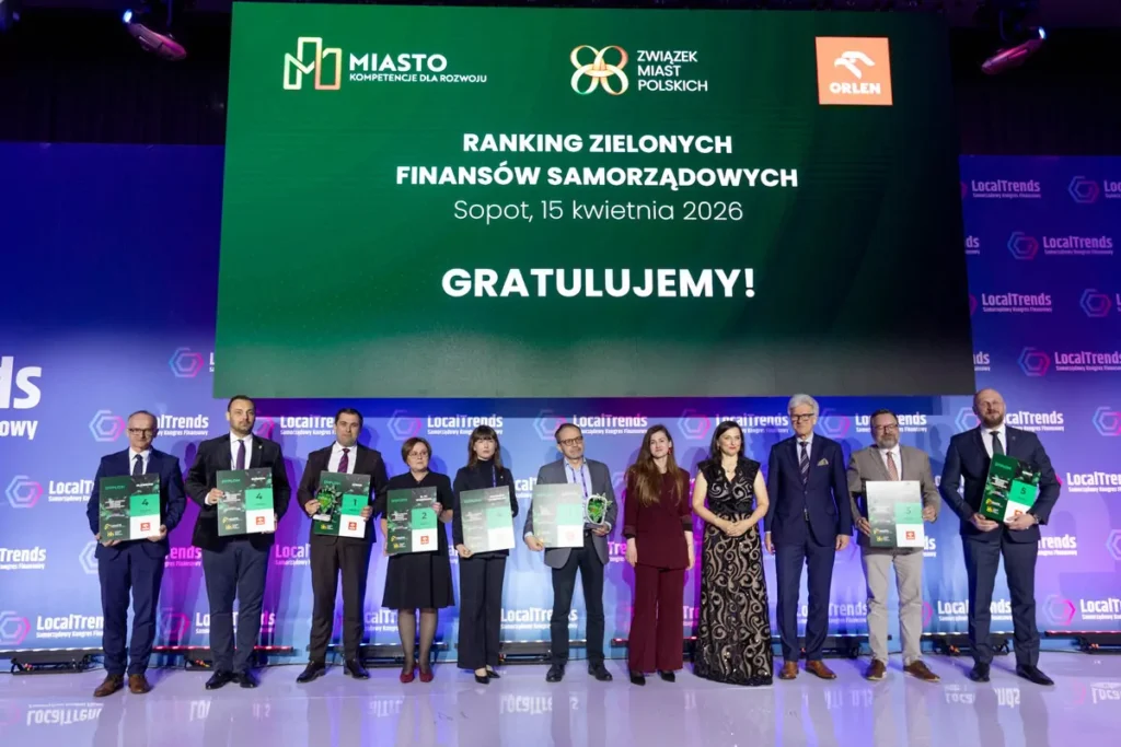 Jawor, Kłecko, Kleszczów i Bydgoszcz – to tegoroczni Liderzy Rankingu Zielonych Finansów Samorządowych. Nagrody wręczono 15 kwietnia 2026 r. podczas uroczystej Gali Samorządowego Kongresu Finansowego – Local Trends 26’ w Sopocie.